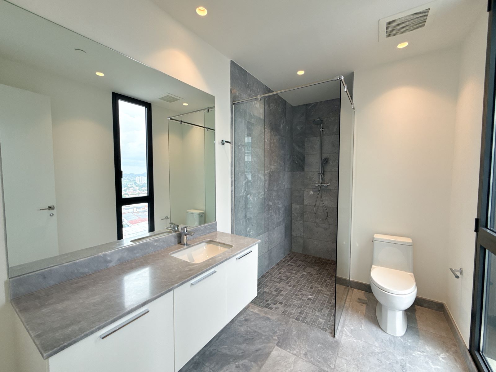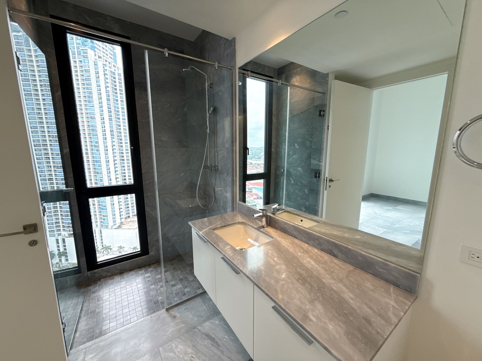 - Ventanas de piso a techo con aislamiento térmico y acústico